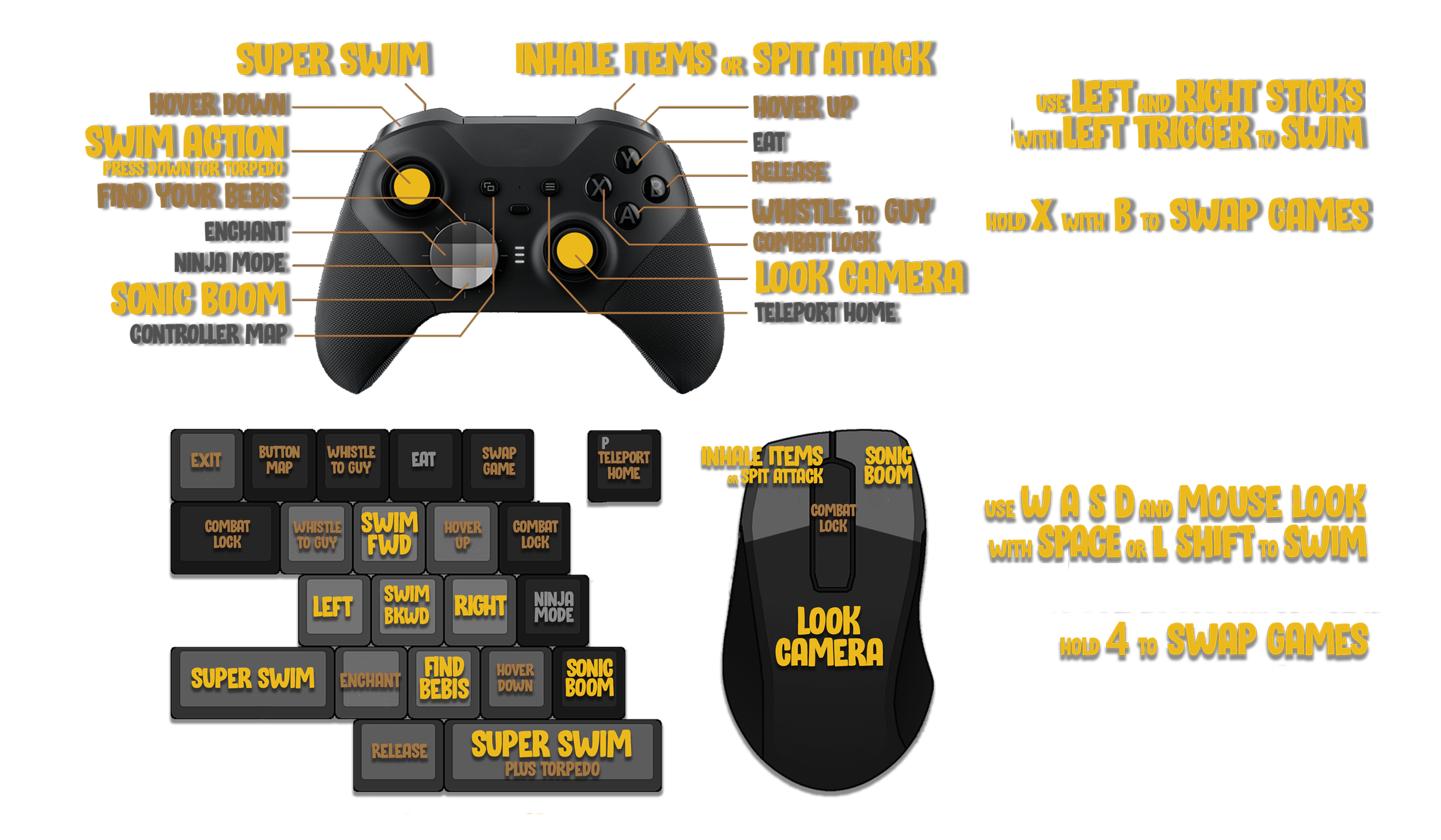 You can swim really fast with this one. It hurts when you run into stuff though. It’s especially helpful when you need a little boost when jumping above the waterline but we didn’t tell you that.
